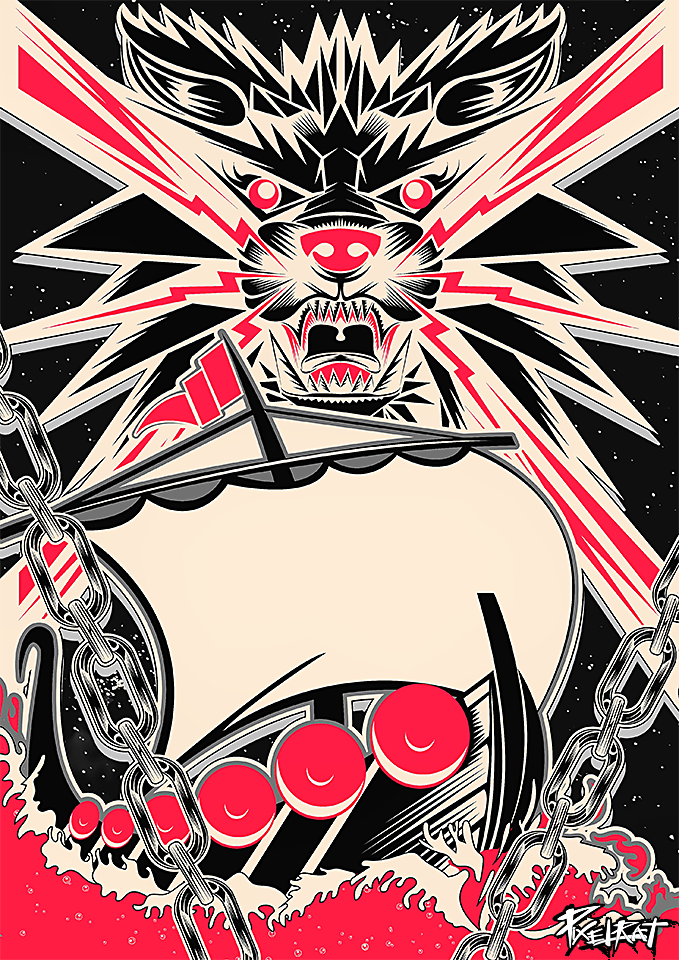 An illustration based on the Norse myth of Fenrir, the monster wolf. Everything done using the Illustrator CC pen tool with some post color correction and some small touchups in Photoshop.